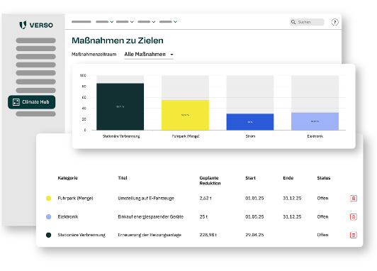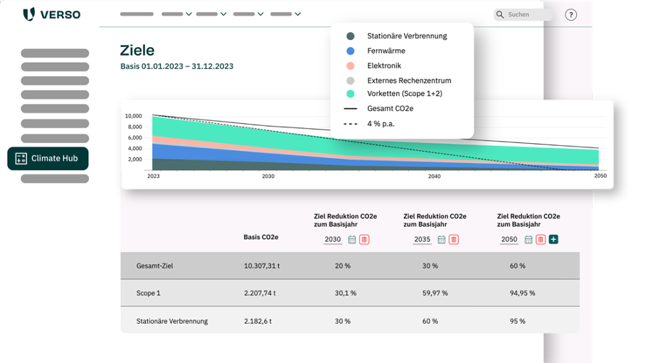Den größten Einfluss auf den Klimawandel haben wir jedoch nicht in unserem eigenen Geschäftsbetrieb, sondern durch die software- und beratungsgestützte Begleitung unserer Kunden bei deren Emissionsreduzierung. Mit dem Climate Hub unterstützen wir Unternehmen dabei, ihre Emissionen systematisch und gesetzeskonform zu erfassen und zugleich effizient in ihrer Strategie zu verankern. Unsere Software bündelt sämtliche Klimadaten an einem Ort und bildet die regulatorischen Anforderungen der ESRS E1-5 und E1-6 vollständig ab. Dadurch liefern wir Unternehmen eine verlässliche Klimabilanz, die nicht nur Berichtspflichten erfüllt, sondern echten Mehrwert für strategische Entscheidungen liefert.